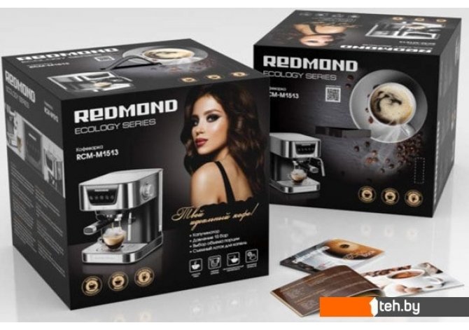 Фотографии, описание и технические характеристики модели кофеварки Redmond RCM-M1513 взяты из открытых источников, официального сайта производителя или представительства Redmond в Республике Беларусь.