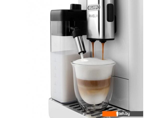 Фотографии, описание и технические характеристики модели кофеварки DeLonghi Rivelia EXAM440.55.W взяты из открытых источников, официального сайта производителя или представительства DeLonghi в Республике Беларусь.