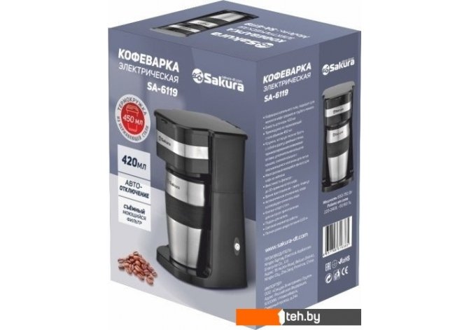 Фотографии, описание и технические характеристики модели кофеварки Sakura SA-6119 взяты из открытых источников, официального сайта производителя или представительства Sakura в Республике Беларусь.