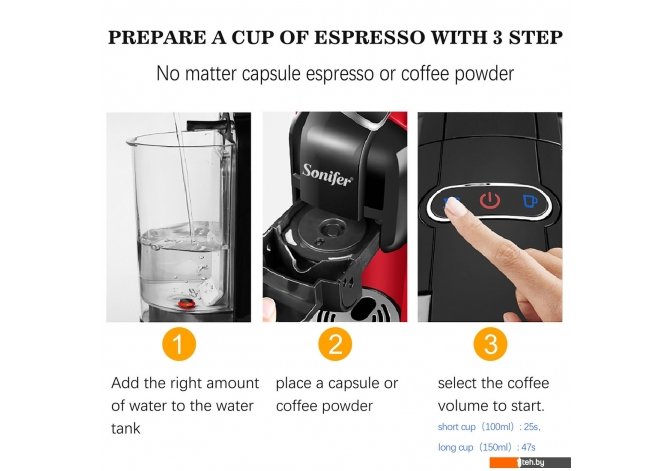 Фотографии, описание и технические характеристики модели кофеварки Sonifer SF-3547 взяты из открытых источников, официального сайта производителя или представительства Sonifer в Республике Беларусь.
