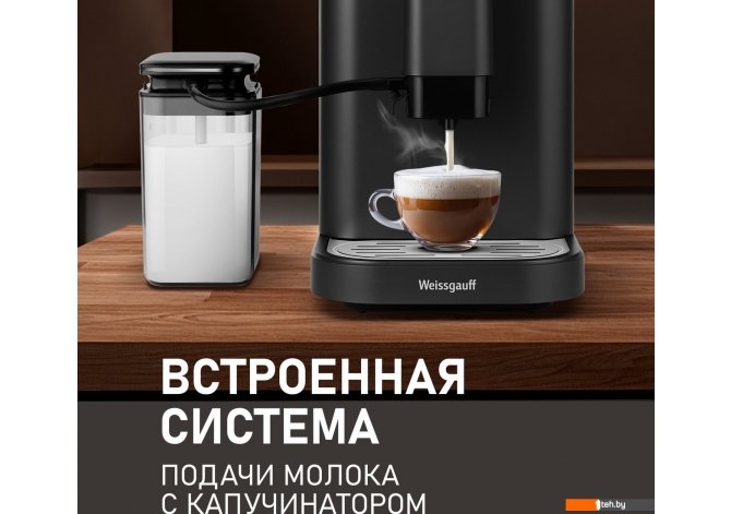 | Информация | - Компактная кофемашина Weissgauff в стильном черном цвете станет отличным дополнением вашей кухни. Она оснащена контейнером для зерен на 200 грамм и удобной сенсорной панелью управления. Благодаря системе подачи молока с автоматическим капучинатором и внешней емкости для молока, вы сможете готовить ароматный кофе с легкостью! - В кофемашине предусмотрены 5 предустановленных программ: «Эспрессо — 1 чашка», «Эспрессо — 2 чашки», «Американо», «Капучино» и «Латте». Итальянская помпа с давлением 20 бар гарантирует, что ваш кофе будет вкусным и сбалансированным, не уступая напиткам из профессиональных машин. - Сенсорное управление интуитивно понятно и быстро реагирует на прикосновения, что делает процесс приготовления кофе простым и приятным. Встроенная система подачи молока с капучинатором позволяет создавать напитки с качественной молочной пенкой, которая сохраняет оригинальный вкус и аромат вашего кофе. - Удобная емкость для молока обеспечивает легкость добавления молока в кофемашину. 15 уровней регулировки степени помола помогут вам достичь идеального баланса кислинки и горчинки, не меняя пропорции воды и кофе. - Регулировка объема напитка позволяет настроить количество воды в одной порции кофе, а предварительное смачивание улучшает экстракцию и раскрывает ароматические вещества, делая кофе еще вкуснее. - Конические жернова из нержавеющей стали идеально подходят для домашнего использования, так как они менее подвержены перегреву и не требуют высокой скорости вращения. Автоотключение и режим энергосбережения помогут вам экономить электроэнергию, автоматически отключая кофемашину, когда она не используется. |