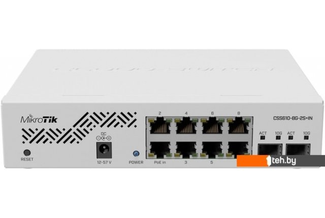 Фотографии, описание и технические характеристики модели коммутатора Mikrotik CSS610-8G-2S+IN взяты из открытых источников, официального сайта производителя или представительства Mikrotik в Республике Беларусь.