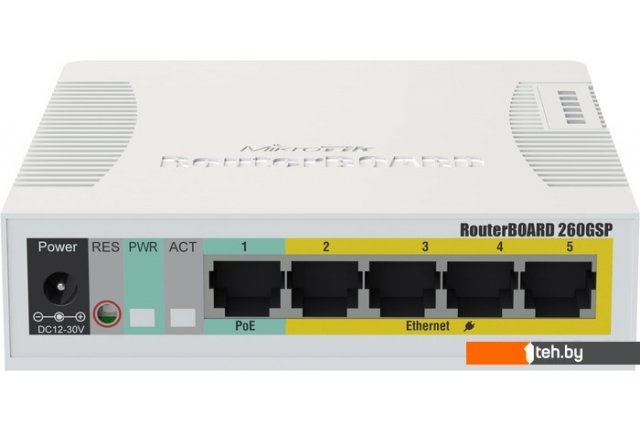 Фотографии, описание и технические характеристики модели коммутатора Mikrotik RouterBoard 260GSP взяты из открытых источников, официального сайта производителя или представительства Mikrotik в Республике Беларусь.