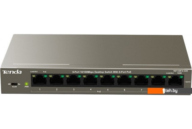 Фотографии, описание и технические характеристики модели коммутатора Tenda TEF1109P-8-102W взяты из открытых источников, официального сайта производителя или представительства Tenda в Республике Беларусь.