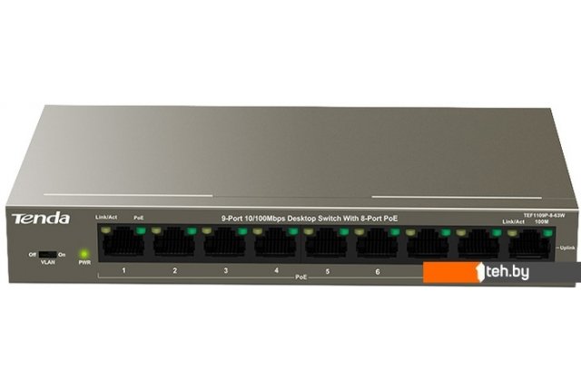 Фотографии, описание и технические характеристики модели коммутатора Tenda TEF1109P-8-63W взяты из открытых источников, официального сайта производителя или представительства Tenda в Республике Беларусь.
