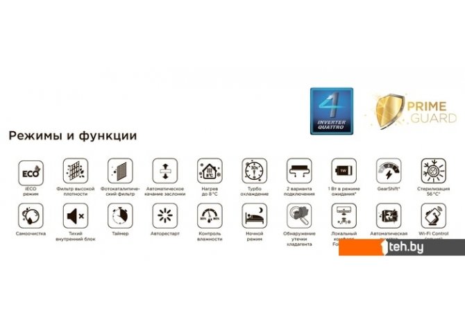 | Шум внутреннего блока | 22.5 — 38.5 дБ |