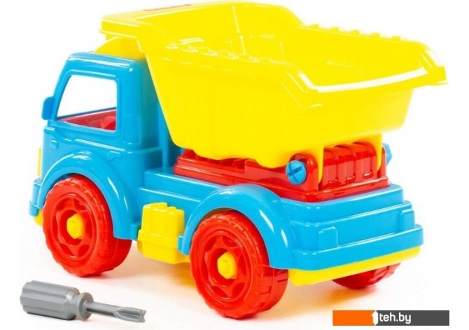 | Информация | Игрушка выполнена в ярких цветах, из качественного материала, имеет округлую форму. Все элементы самосвала представлены в виде конструктора, который соединяется с помощью пластмассовых шурупов. В наборе также идёт крестообразная отвёртка, которая разнообразит игру, сделает её ещё интереснее, позволяя без труда разбирать и собирать самосвал. Игра с таким конструктором знакомит ребёнка с первыми навыками моделирования и конструирования, а также развивает фантазию. Упакована игрушка в яркую коробку, которая может выступать в качестве подарочной. |