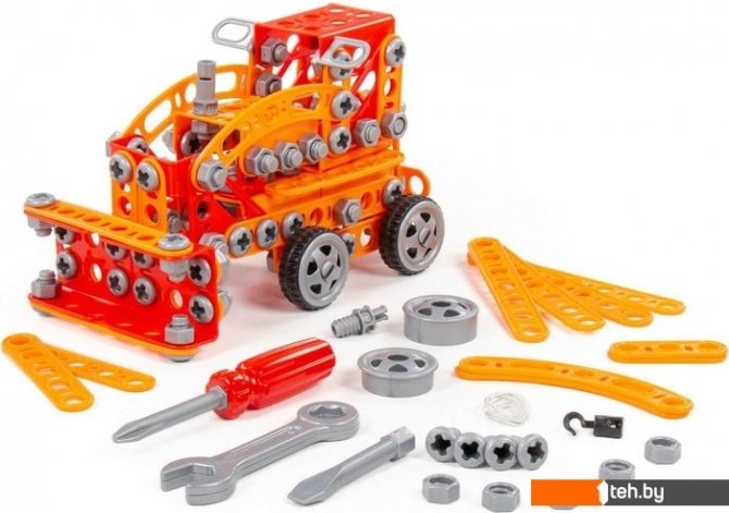 | Информация | Создан специально для маленьких изобретателей. Элементы выполнены в виде планок с отверстиями. Планки соединяются между собой при помощи болтов и гаек. В комплект входит подробная инструкция, следуя которой можно создать модели, представленные на упаковке игрушки. Игра с конструктором не ограничивается сборкой исключительно по инструкции. Юные новаторы всегда могут дать волю своей фантазии и создавать что-то новое. Игры с конструктором могут определить будущую профессию малыша, раскрыв в нём творческий потенциал. |