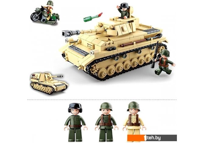 Фотографии, описание и технические характеристики модели Sluban Армия ВОВ Немецкий танк PanzerIV M38-B0693 9019764 взяты из открытых источников, официального сайта производителя или представительства Sluban в Республике Беларусь.