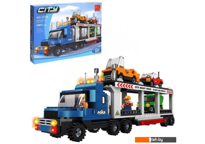 | Информация | Без этих рабочих жизнь в городе станет сложнее. Изо дня в день они перевозят спецтехнику для строительства дорог и доставляют ее на предприятия. Чтобы помочь им справиться с задачей, малыш соберет мощный автовоз с двухуровневым прицепом и привезет долгожданные машины будущим владельцам. Набор содержит 454 детали и позволяет сконструировать функциональный грузовик с тремя дополнительными машинами. Разнообразие предметов создаст неограниченный простор для воображения — малыш придумает множество ярких игровых сюжетов. Элементы изготовлены из высококачественной пластмассы, надежно соединяются между собой и разбираются без особого труда. |