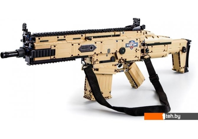 | Информация | Scar отличается возможностью стрельбы непрерывными очередями благодаря входящему в комплект мотору и батарейному блоку. Собранная из 1406 деталей винтовка разнообразит игру мальчишки не только в период сборки, но и во время игры с почти настоящим оружием. |