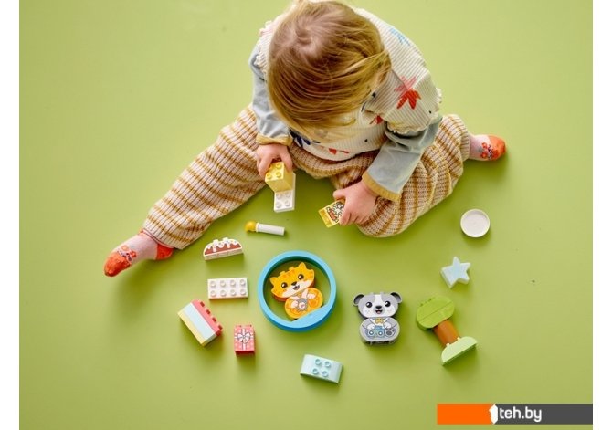 | Информация | В этот очаровательный игровой набор с животными входят милый котенок и щенок, и каждый из них собирается из двух подходящих для малышей деталей. Ваш юный любитель животных с удовольствием поместит своего питомца в игрушку-каталку. У каждого животного есть функция звуков, которая расширяет возможности для игры и обучения. Звуки подсказывают, что пришло время поесть, играть, ложиться спать и так далее — это отличный способ научить малышей распорядку дня. Домашние животные для малышей — набор «Мой первый щенок и котенок и их звуки» LEGO DUPLO (10977) открывает возможности обучения и игры для малышей, любящих домашних животных Обучающие игрушечные котенок и щенок — игровой набор включает в себя котенка и щенка, которые издают реалистичные звуки для различных ситуаций, а также игровой обруч для животных Развитие навыков — малыши складывают два кубика, чтобы сделать каждого питомца, а потом ухаживают за ними, играют и прислушиваются к их потребностям Подарок для дошкольников — этот практичный игровой набор станет отличным подарком на день рождения или по любому другому поводу для малышей в возрасте от 18 месяцев Удобные для малышей детали — размеры каждого игрушечного питомца составляют более 9 см в высоту, 8 см в ширину и 3 см в глубину |