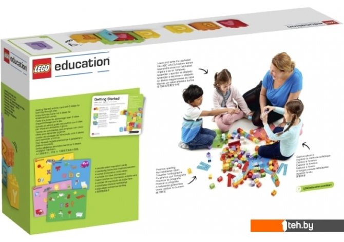 | Информация | Набор LEGO® Education «Английский алфавит» позволяет детям играть и знакомиться с миром букв, собранном из кубиков LEGO® DUPLO®.Набор включает в себя английские буквы всех цветов радуги, карточки с идеями для сборки и карточку «Первые шаги» с занятиями, которые помогут детям выучить английский алфавит, научат их узнавать и писать латинские буквы, составлять слоги, короткие слова и имена.Строительные пластины и специальные детали вдохновят детей на составление простых и сложных слов из заглавных и строчных букв, сортировку гласных и согласных букв. Все это в рамках выполнения веселых заданий, таких как «Угадай пропущенную букву!». |