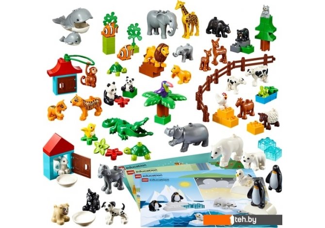 | Информация | Этот набор, входящий в систему дошкольного образования LEGO® Education, включает в себя 90 деталей LEGO DUPLO®, в том числе 40 фигурок диких животных, сельскохозяйственных животных и домашних питомцев, а также 4 двусторонние карточки с идеями для сборки, изображающие 8 различных мест обитания, благодаря которым дети смогут больше узнать о том, чем отличаются животные друг от друга и что им нужно для выживания.В набор также входит карточка «Первые шаги», содержащая 5 идей для занятий и развития у детей навыков XXI века, в том числе социально-эмоциональных и математических компетенций, в безопасной и мотивирующей образовательной среде. |