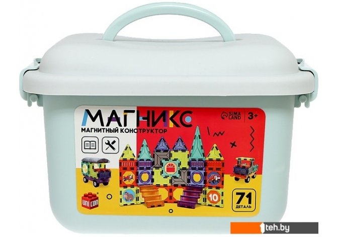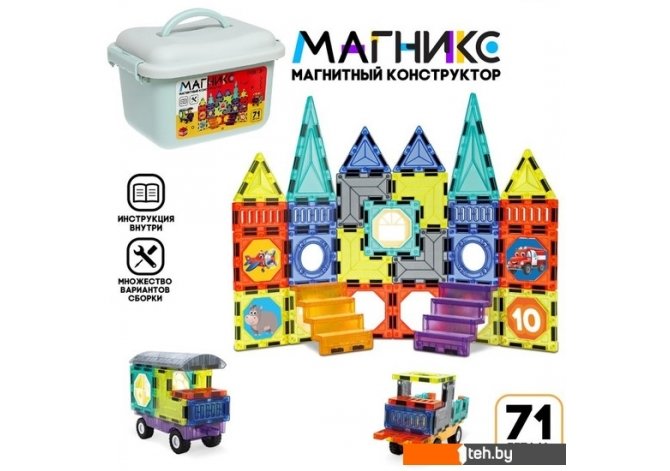 | Информация | Магнитный конструктор — это набор, детали которого соединяются как по волшебству. Под действием магнитного поля элементы притягиваются друг к другу, открывая неограниченный простор для экспериментов. Особенности конструктора: Яркие детали в виде геометрических фигур. Магниты легко притягиваются друг к другу, образуя прочные конструкции. Элементы изготовлены из качественного пластика с использованием безопасных красителей. Не только увлекательно, но и полезно! Конструирование способствует многогранному развитию детей. Пространственное мышление — ребёнок познаёт соотношения элементов: справа, слева, выше, ниже. Конструкторские способности — осознание, каким образом создаются различные объекты. Образное мышление — стиль мышления, который отвечает за создание определённого образа, формирующегося в представлении ребёнка. Мелкая моторика, глазомер — работая с конструктором, малыш развивает мелкие мышцы руки, учится соизмерять мышечное усилие, тренирует глаза. Творческие способности и воображение. Дополнительно: База на колёсах: 17 ? 6,5 ? 4 см. Диаметр колёс — 3 см. Треугольники: 12 ? 6,4 ? 0,6 см и 6,2 ? 5,5 ? 0,6 см. Крыша: 12,8 ? 7,3 ? 2 см. Лесенка: 10 ? 6,5 ? 0,6 см. Квадрат с кругом внутри: 6,4 ? 6,4 ? 0,6 см. Диаметр круга — 3,2 см. Квадрат с вырезом под восьмиугольник: 6,4 ? 6,4 ? 0,6 см. Восьмиугольник: 4,6 ? 4,6 см. Прямоугольник: 6,4 ? 3,2 ? 0,6 см. Деталь в форме «Ш»: 6,4 ? 3,2 ? 0,6 см. Уголок: 6,4 ? 6,4 ? 0,6 см. Восьмиугольники (вставки немагнитные): 4,5 ? 4,5 ? 0,6 см. Наклейки: 4,1 ? 4,1 см. Инструкция. |