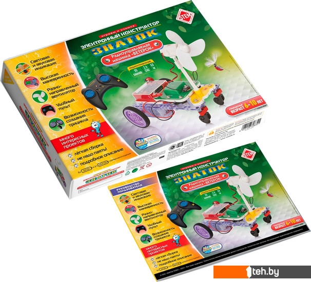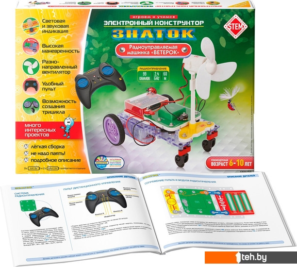 Информация | ? Конструктор "Ветерок" - радиоуправляемая машинка, которая поможет вам увлекательно изучить физику и электронику! ? Уникальная возможность собрать трицикл с подсветкой или машинку с музыкальным сопровождением. Изучаем световую и звуковую индикацию, а также принцип работы генератора с помощью мотор-редукторов. ? Яркое и понятное руководство поможет ребенку собрать и испытать схему! Пульт дистанционного управления рассчитан на 99 каналов для проведения соревнований. ? Абсолютная безопасность и простота сборки - не надо паять! Удовольствие получают не только дети, но и их родители! ? В комплекте руководство пользователя с перечнем элементов и их описанием. |