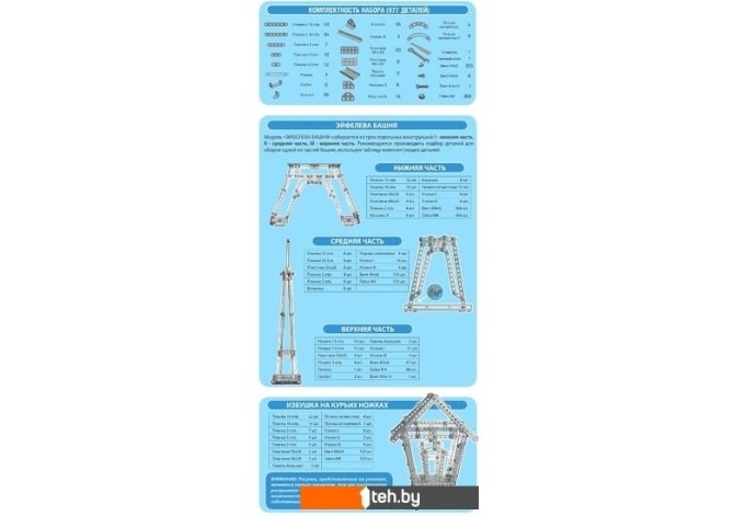 Если хотите купить Десятое королевство Металлический конструктор 00863 Эйфелева башня то следует уточнить все параметры и габариты модели перед покупкой. Представленые характеристики на сайте 1teh.by могут отличаться от действительных или указанных производителем. Описание, фото товара и технические характеристики представлены для справки.