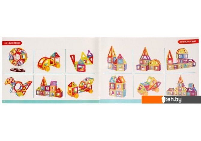 | Информация | «Магический магнит» – это удивительный конструктор, который позволяет соединять детали как по волшебству. Благодаря магнитному полю, элементы притягиваются друг к другу, открывая безграничные возможности для творчества и экспериментов. С помощью ярких геометрических форм, ребенок сможет создать разнообразные модели, включая машины, карусели, башни, вертолеты и даже ракеты. Иллюстрированная инструкция поможет вдохновиться новыми идеями и продемонстрирует основные принципы конструирования, делая процесс создания фигурок более простым и увлекательным. Размеры: - Квадрат: 4.2?4.2?0.4 см. - Треугольник: 3.2?3.7?0.4 см. - Основа на колесах (2 шт.): 8.8?4.6?3 см. - Четырехугольник: 8?3.7?0.4 см. - Шестиугольник: 8.5?7.5?0.4 см. - Основа для карусели: 15.5?9.5?14 см. |