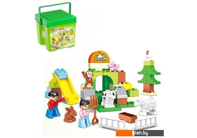 | Информация | ? Обитатели этой фермы не дадут заскучать! ? С озорной обезьянкой, петухом, зайцем, коровой и барашком ребенок придумает множество увлекательных сюжетов. ? Он с удовольствием будет заботиться о животных, построит для них вольеры, горки и посадит деревья. ? Контейнер для хранения элементов выполнен в форме кейса, а его крышка послужит платформой для строительства ранчо. |