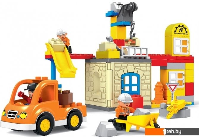 | Информация | Конструктор Стройка станет любимой игрушкой любого мальчика! Ведь в наборе есть 2 фигурки строителя, строительный грузовик, подъемный кран, двухэтажная строительная база и многие другие яркие и интересные аксессуары, без которых нельзя обойтись ни на одном строительстве. Веселая игра даст первые представления о пространственном восприятии, логике и творческом мышлении. |
