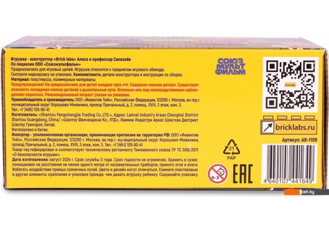 Фотографии, описание и технические характеристики модели Brick Labs Тайна третьей планеты: Алиса и профессор Селезнев AB-1109 взяты из открытых источников, официального сайта производителя или представительства Brick Labs в Республике Беларусь.