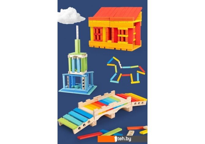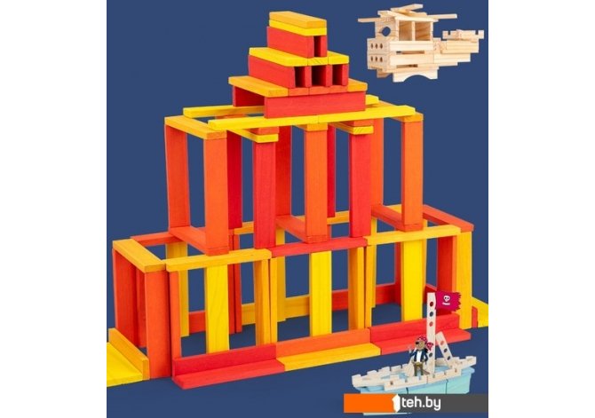 | Информация | ? Конструктор Top Goods Теплый цвет MZ0266/W - идеальный выбор для мальчиков, девочек и малышей, которые любят конструировать и строить необычные фигурки и возводить удивительные постройки. В наборе 100 шт. деталей: 80 шт. досточек «теплых цветов» - светложелтый (20 шт.), желтый (20 шт.), оранжевый (20 шт.) и красный (20 шт.), и 20 шт. досточек четырех разных видов (по 5 шт. досточек каждого вида). Этот деревянный конструктор помогает развивать моторику, координацию движений и пространственное мышление. Книжка-инструкция с возможными вариантами построек поможет погрузиться в удивительный мир конструирования. Красочный и увлекательный набор, который поможет развивать творческую мысль и воображение. |