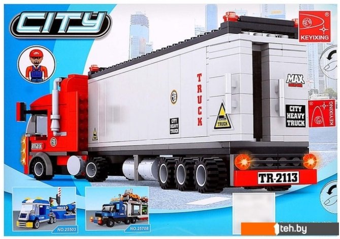 | Информация | Городской трейлер расширит игровые возможности юного конструктора. Из 281 детали мальчишка соберет реалистичный тягач с прицепом и фигурку водителя. С большегрузной машиной ребенок наладит доставку товаров на предприятия, и жизнь в мегаполисе закипит. |