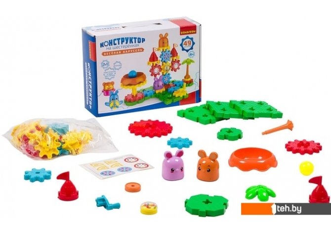 | Информация | Конструктор на шестеренках - это очень интересная развивающая игрушка, которая подарит малышу минуты радости и удовольствия от игры. Cостоит из блок-пазлов и шестеренок, которые соединяются друг с другом. Вместе детали образуют рабочие механизмы разных сложностей. Основная задача - построить конструкцию для создания подвижного механизма, чтобы при повороте рукоятки все детальки пришли в движение. |