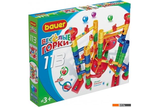 | Информация | С наборами Bauer «Веселые горки» можно построить множество вариантов маршрута для скатывающегося вниз шарика, а затем наблюдать результаты своего труда, следя за тем, как шарик следует по заданной траектории. Набор «Веселые горки» — это игра, развивающая воображение и логику ребенка. Суть игры заключается в правильном построении маршрута для шарика. Некоторые варианты сборки многоуровневого маршрута указаны на упаковке. В игре могут участвовать несколько игроков одновременно, соревнуясь, чей шарик придёт к финишу первым. Конструктор прекрасно подходит для детского творчества и семейного отдыха, способствуют развитию объёмного мышления ребенка, фантазии, координации движения глаз, мелкой моторики и памяти. В состав конструктора входит 113 деталей различных форм, цветов и размеров. Игрушки сделаны из высококачественного пластика с использованием пищевых красителей. Комплектация наборов: желоба для шарика, шарики, опоры для горок, приемные желоба для шариков, составные детали горок с желобами и без, вращающиеся элементы с лопастями. Дизайн упаковки очень яркий и привлекательный. Упаковка, как и сами наборы, разработана совместно дизайнерами и психологами. Цветовая гамма очень хорошо подходит для детского восприятия. Все используемые упаковочные материалы экологически безопасны. |