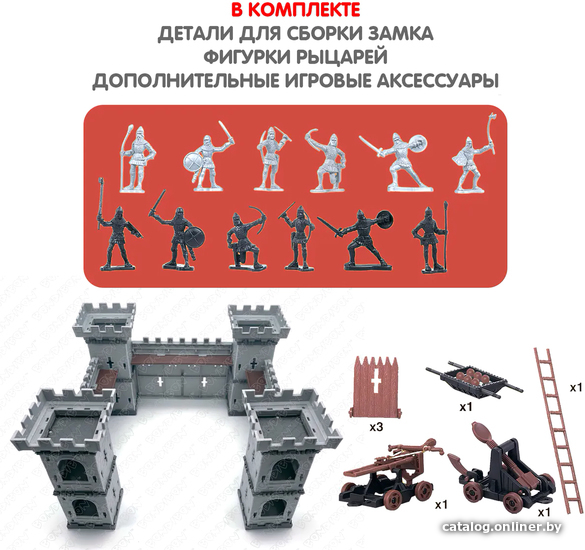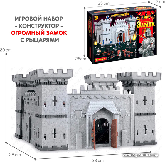 Информация | Устрой настоящие рыцарское сражение! Защити свой замок от нападения противника. Игровой набор королевский замок-прекрасный подарок для вашего ребенка. Он позволит перенестись в мир сказочного средневековья, мир рыцарей и принцесс. Игрушка поможет развить мелкую моторику, пространственное мышление и фантазию. Набор изготовлен из прочных материалов, отвечающих всем стандартам качества и безопасности. |