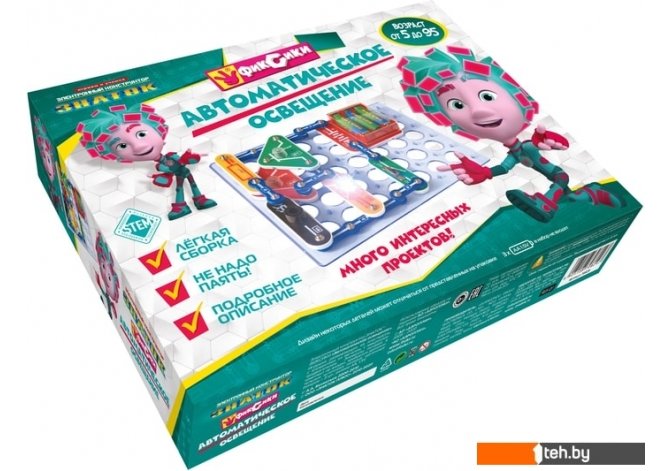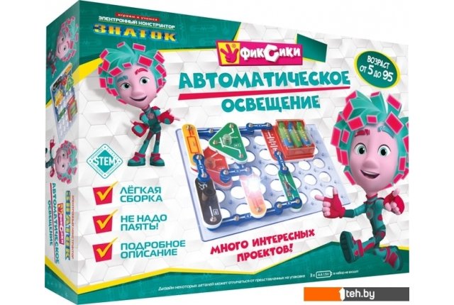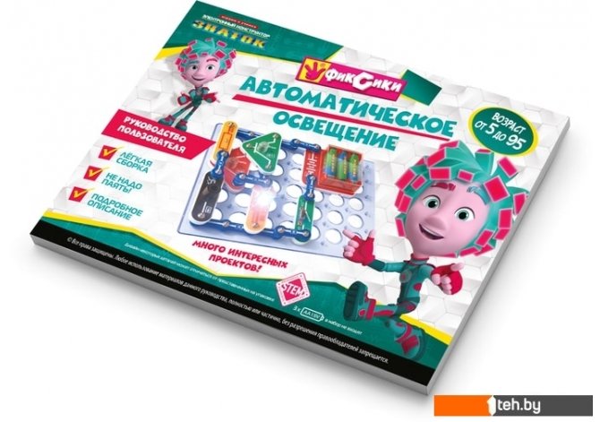 | Информация | Электронный конструктор начального уровня, позволяющий ребёнку понять, как работают многие «умные вещи» вокруг нас, в частности, системы автоматического освещения, которые экономят электроэнергию и, следовательно, деньги. Даже без помощи взрослых, используя очень понятное цветное руководство, всего за несколько минут, он или она смогут собрать и испытать схему с практически 100% положительным результатом. Очень полезна будет подсказка в виде QR-кода, которую можно просмотреть при помощи смартфона или планшета.Абсолютная безопасность и простота сборки — не надо паять!Мы рекомендуем данный конструктор для детей 5-10 лет, но он рассчитан практически на любой возраст. Простота соединений и ясность описания позволяет собирать сложные схемы даже ребенку пяти лет, но даже умудренному в электронике человеку будет интересно собрать и опробовать схему, а затем воплотить её в реальной жизни.Удовольствие получают не только дети, но и их родители!Помимо этого в «Руководстве пользователя» вы найдёте перечень элементов конструктора. Для удобства собирания деталей в коробку мы приводим схему расположения элементов.В комплектацию данного набора входит «Руководство пользователя» и детали, необходимые для выполнения предложенных в руководстве проектов. Руководство с описанием схем располагается в коробке под прозрачной монтажной платой. Нижняя часть коробки вместе с деталями и книгой запечатана в полиэтиленовую плёнку.Для работы схем необходимы 3 батареи (приобретаются отдельно) размера АА, напряжением 1,5 V. |