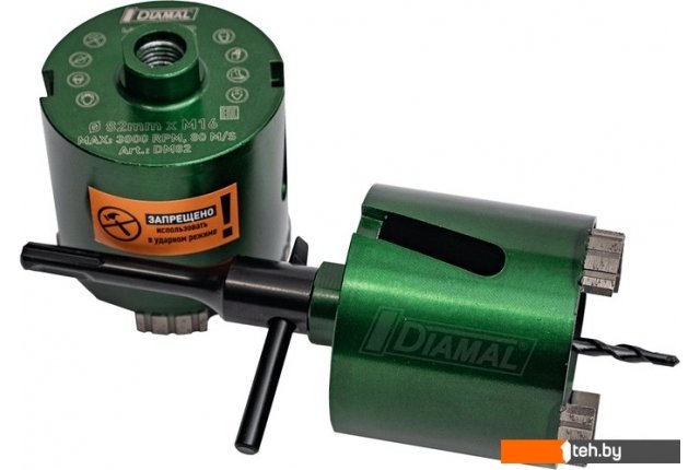 | Информация | Алмазное сверло для подрозетников DIAMAL предназначено для бурения в бетоне, слабо армированном бетоне и кирпиче перфораторами мощностью от 600 Вт. без охлаждения и только в безударном режиме. В комплект входит центрирующее твердосплавное сверло, адаптер M16 / SDS Plus, клин для выбивания. Высококачественные сегменты специальной формы, приваренные лазером к корпусу, придают коронке высокую скорость сверления и большой ресурс работы . |