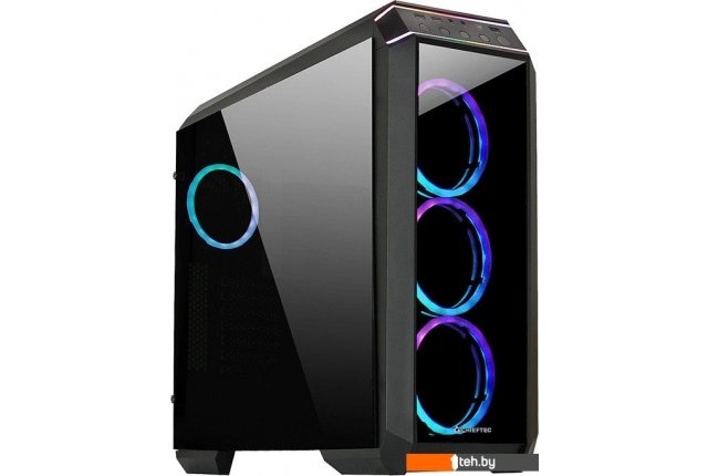 | Информация | The CHIEFTEC STALLION II premium GAMING CHASSIS comes with tempered glass on the left side and front panel, thereby enhancing a clear overview of the interior of the chassis and positively exposing RGB RING fans andother lightening components. 4 pre-installed 120mm RGB RAINBOW RING fans are controlled by a remote control unit which forms part of the extensive „scope of delivery“. The sophisticated interior design allows the integration of an additional 360mm water-cooling radiator to the front and so, this second generation Chieftec gaming chassis fulfills and surpasses every gamer’s expectations. |