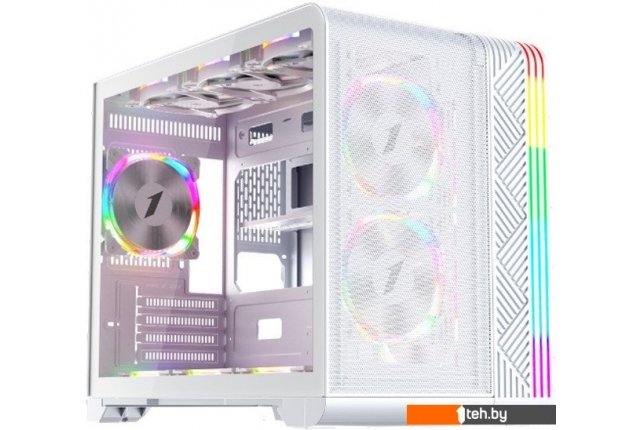 | Информация | - 1STPLAYER VT6 – это современный компьютерный корпус с акцентом на высокую вентиляцию и поддержку мощных комплектующих. Его главная особенность – возможность установки до 11 вентиляторов и радиаторов СЖО до 360 мм сбоку и до 240 мм сверху, что обеспечивает эффективное охлаждение даже при сборке производительных систем. - Корпус выполнен из сочетания металла, пластика и закаленного стекла, что придаёт ему стильный внешний вид и прочность. Белый цвет корпуса отлично впишется в любой интерьер, а боковое окно из закаленного стекла позволит любоваться внутренней сборкой. - Фронтальная панель выполнена в виде металлической сетки, что способствует свободному прохождению воздуха и увеличивает продуваемость корпуса. Для удобства обслуживания предусмотрен выдвижной пылевой фильтр снизу, который легко снимается и очищается. - VT6 поддерживает установку материнских плат формата micro-ATX и mini-ITX, видеокарт длиной до 400 мм и процессорных кулеров высотой до 157 мм. На фронтальной панели расположены два порта USB 3.0, один USB 2.0 и комбинированный аудиоразъем, что обеспечивает удобное подключение периферии.  |