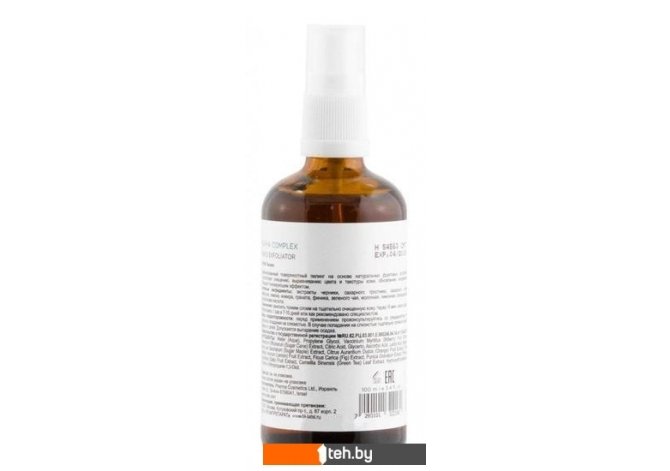 | Активные ингредиенты | апельсин, аскорбиновая кислота (витамин C), клен, лимон, молочная кислота, ромашка, салициловая кислота, финики, чай, черника, тростниковый сахар |