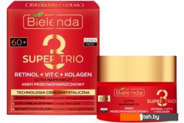 Фотографии, описание и технические характеристики модели Bielenda Крем для лица Super Trio Retinol+Vit C+Kolagen 60+ день/ночь 50 мл взяты из открытых источников, официального сайта производителя или представительства Bielenda в Республике Беларусь.