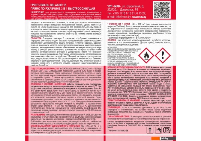 Фотографии, описание и технические характеристики модели MAV Belakor-15 Ral 3000 2.4 л (красный матовый) взяты из открытых источников, официального сайта производителя или представительства MAV в Республике Беларусь.