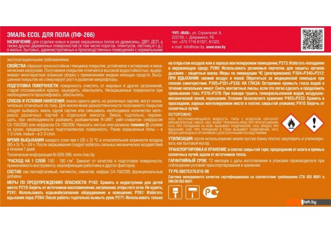 Если хотите купить MAV Ecol ПФ-266 11 кг (светло-коричневый) то следует уточнить все параметры и габариты модели перед покупкой. Представленые характеристики на сайте 1teh.by могут отличаться от действительных или указанных производителем. Описание, фото товара и технические характеристики представлены для справки.