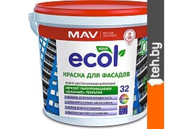 Фотографии, описание и технические характеристики модели MAV Ecol ВД-АК-1032 фасадная 5 л (белый) взяты из открытых источников, официального сайта производителя или представительства MAV в Республике Беларусь.