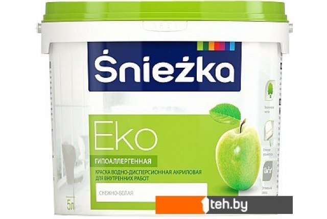 Фотографии, описание и технические характеристики модели Sniezka Eko 5 л (снежно-белый) взяты из открытых источников, официального сайта производителя или представительства Sniezka в Республике Беларусь.