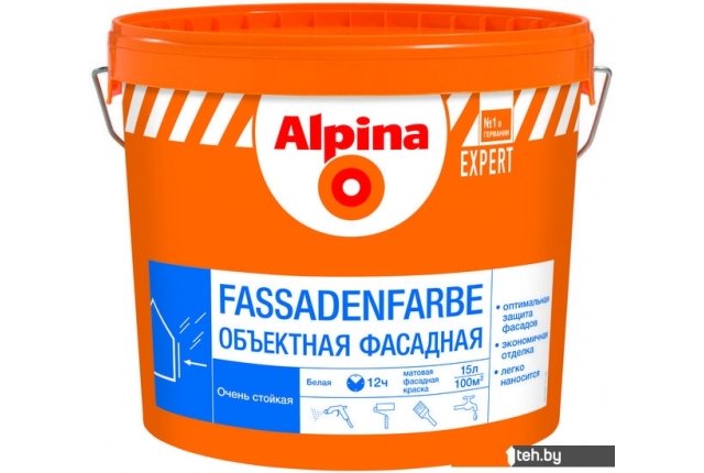 Фотографии, описание и технические характеристики модели Alpina Expert Fassadenfarbe (15 л) взяты из открытых источников, официального сайта производителя или представительства Alpina в Республике Беларусь.