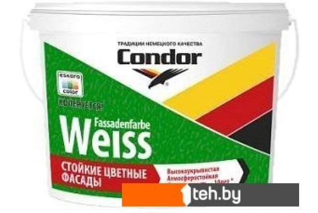 Фотографии, описание и технические характеристики модели Condor Fassadenfarbe Weiss 7.5 кг (белый) взяты из открытых источников, официального сайта производителя или представительства Condor в Республике Беларусь.