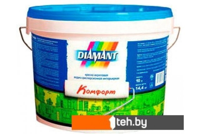 | Информация | Diamant Комфорт - водно-дисперсионная высокоукрывистая интерьерная краска для стен и потолков без особых нагрузок. Особо белая, матовая. Устойчива к влажному протиранию. Пригодна для нанесения на минеральные и гипсовые штукатурки, шпатлевки, кирпич, обои. Может колероваться вручную красками или концентратами. Расход 150 мл/м2 в один проход, 10 л хватает на 66 м2. |