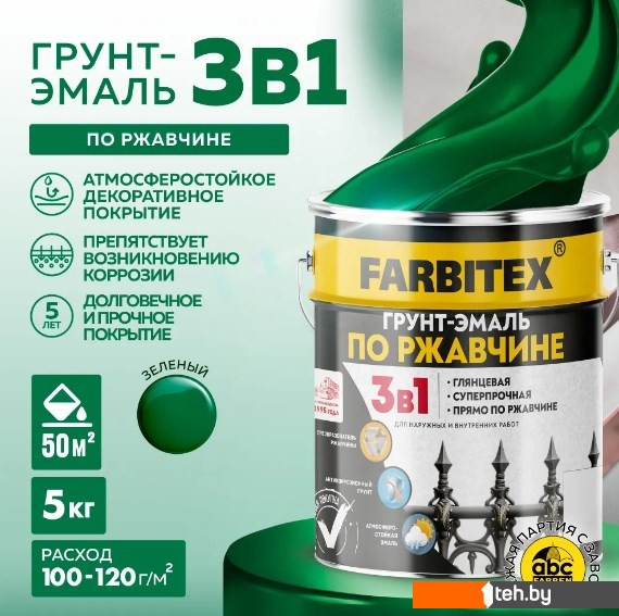 Краски и эмали Farbitex По ржавчине 3в1 5 кг (зеленый)