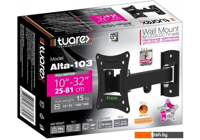 Фотографии, описание и технические характеристики модели кронштейна Tuarex ALTA-103 взяты из открытых источников, официального сайта производителя или представительства Tuarex в Республике Беларусь.