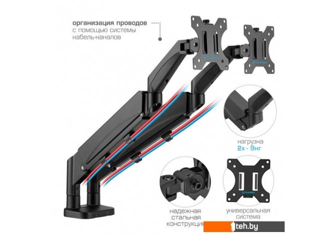 | Функциональные особенности | поворотный, с регулировкой высоты, кабель-канал, струбцинное крепление |