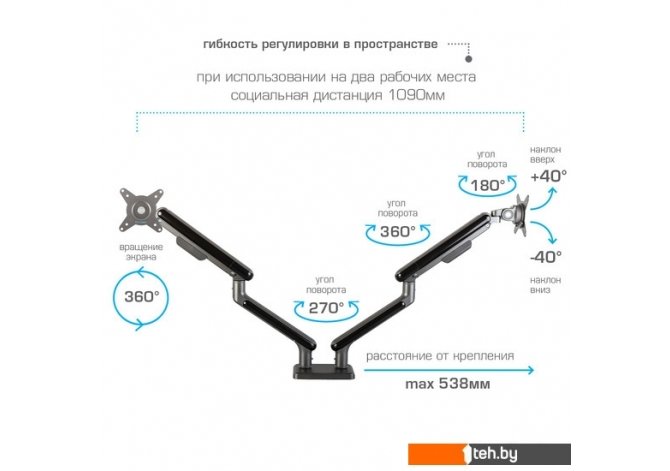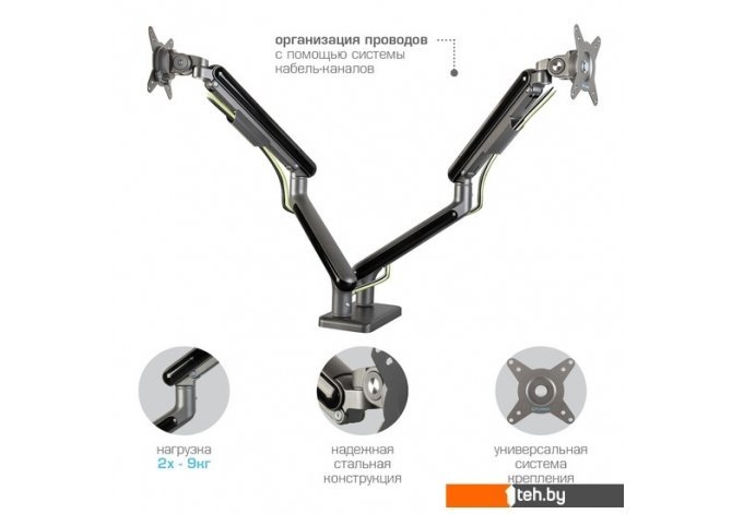 | Функциональные особенности | поворотный, с регулировкой высоты, кабель-канал, струбцинное крепление |