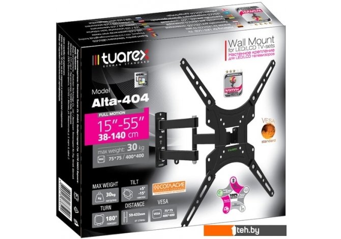 Фотографии, описание и технические характеристики модели кронштейна Tuarex ALTA-404 взяты из открытых источников, официального сайта производителя или представительства Tuarex в Республике Беларусь.