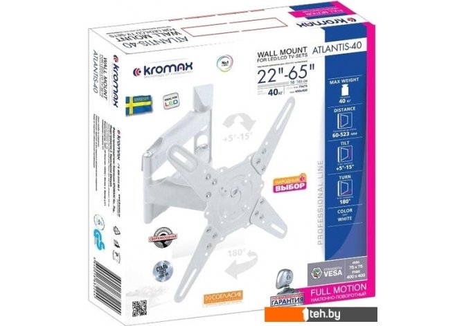 Фотографии, описание и технические характеристики модели кронштейна Kromax ATLANTIS-40 (белый) взяты из открытых источников, официального сайта производителя или представительства Kromax в Республике Беларусь.