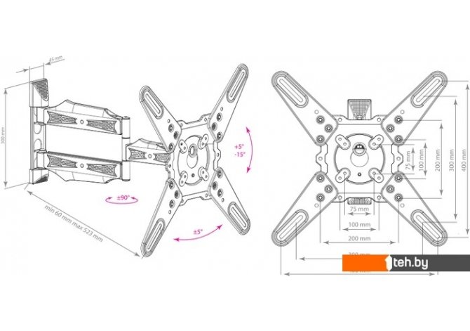 | Расстояние от стены (потолка) | 60 — 523 мм |
